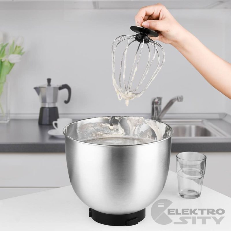 Pomůže vám uhníst těsto na chleba, koláče nebo na pizzu, ušlehá i dokonale tuhý sníh a perfektně vymíchá hladké třené těsto. Mísící metla a hák jsou potaženy teflonovou vrstvou, aby se zabránilo lepení těsta při zpracování.