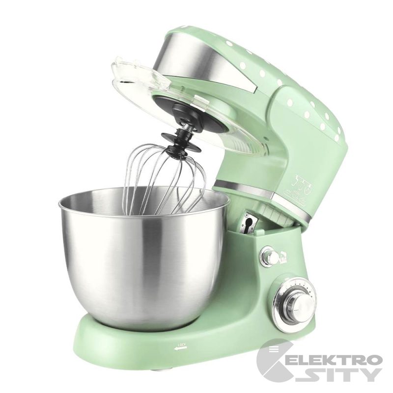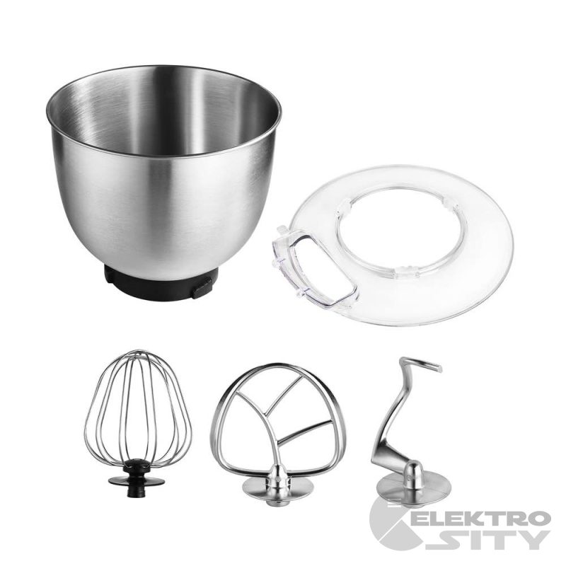 Příslušenství: hák na hnětení těsta, mísící metla, šlehací metla, nerezová mísa a krycí plastové víko, špachtle.
